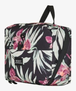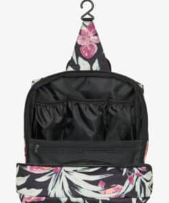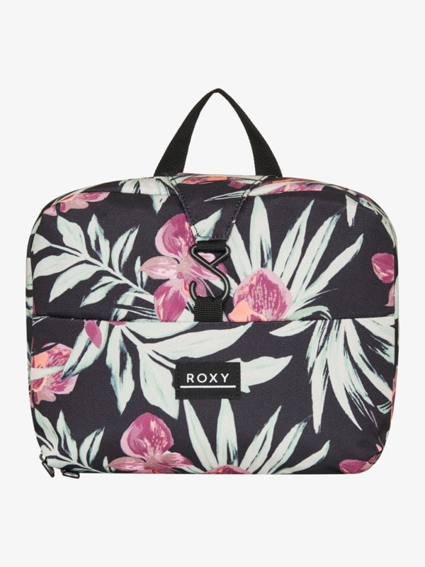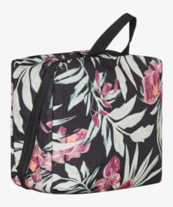 Pratico beautycase con fantasia floreale, scomparto proncipale con zip e gancetto per appenderlo.